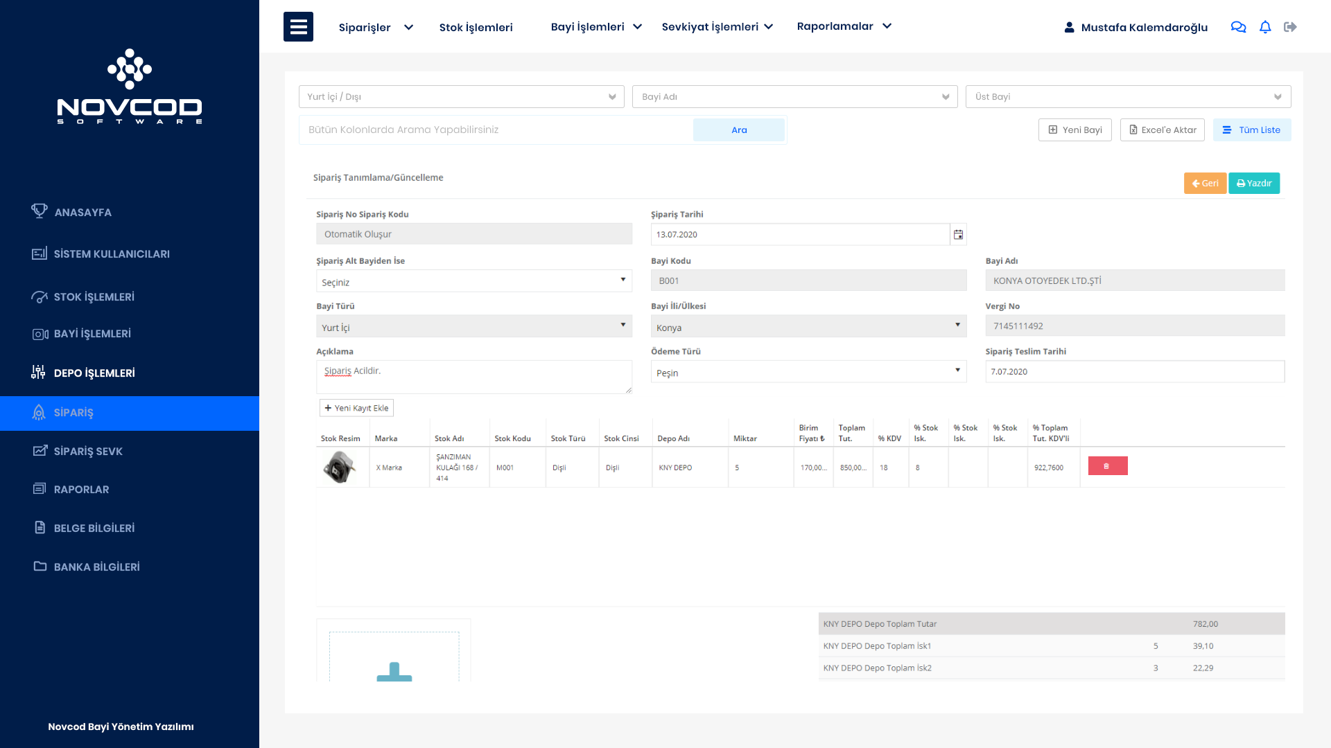 Novcod Bayi Sipariş Yazılımı, temelde işletmenin tüm sipariş süreçlerini kontrol altına alan bir online Web tabanlı ve mobil uygulama yazılımıdır. AltBayilerin Siparişleri ilgili Bayiye ve Bayiden onay lana siparişler direk Fabrikaya sipariş edilir. Bayi Sipariş yazılımı ile stoklarınızı da alt bayi ve/veya müşterilerinize açarak sipariş alabilirsiniz. Her Müşterinize ayrı iskonto ( her ürün grubu içinde ayrı iskonto tanımlanabilir.) ve ödeme koşulları belirleyebilirsiniz.